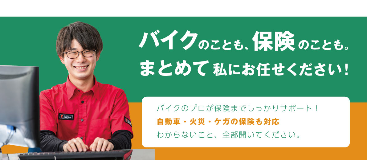 当店では、バイクの販売・整備だけでなく、万が一の際の備えについてもご相談いただける体制を整えています。