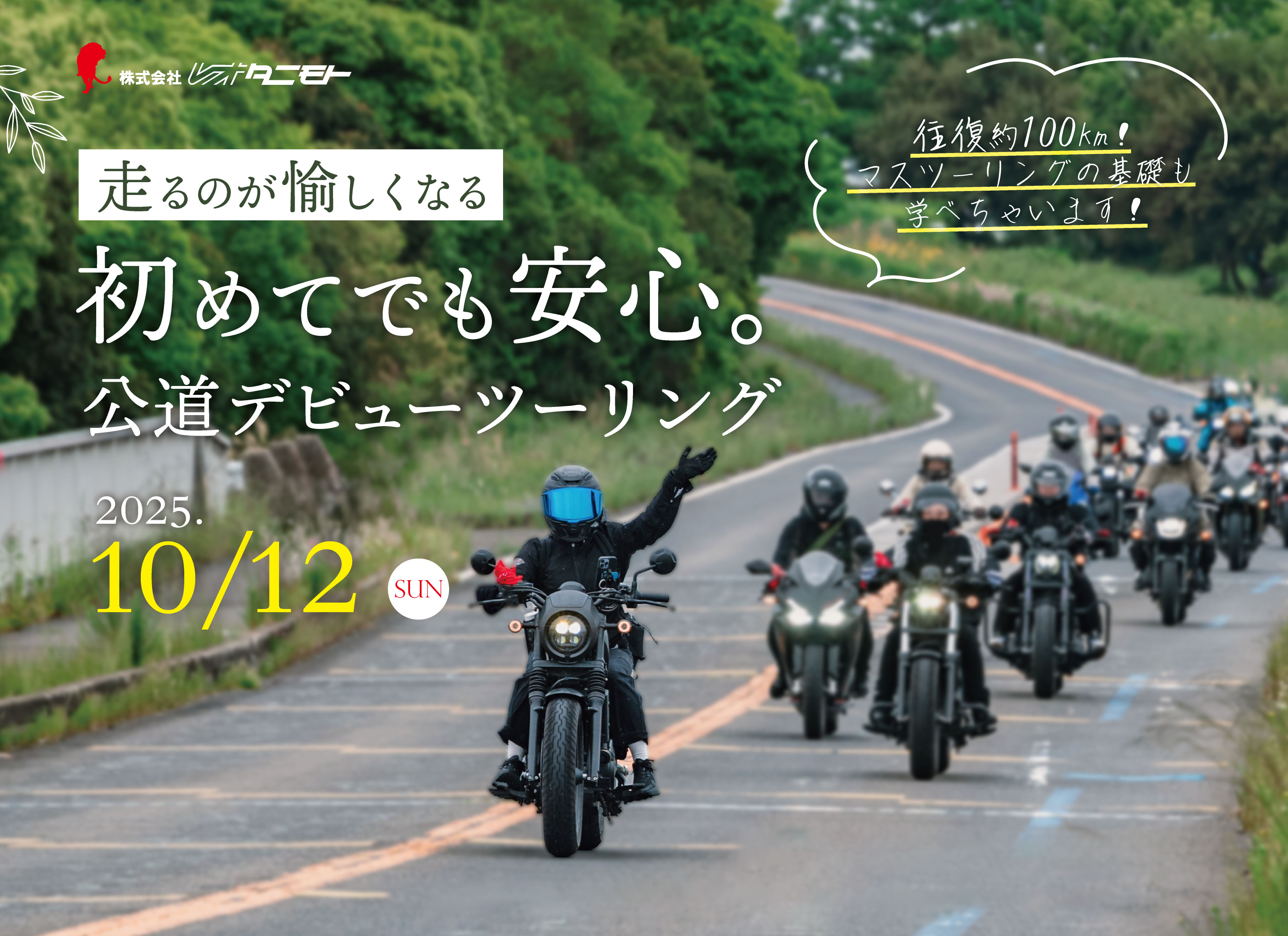 | 参加条件 | レオタニモトグループでバイクをご購入いただいたお客様限定 126cc以上のバイクであれば参加OK 任意保険加入済みの方 |