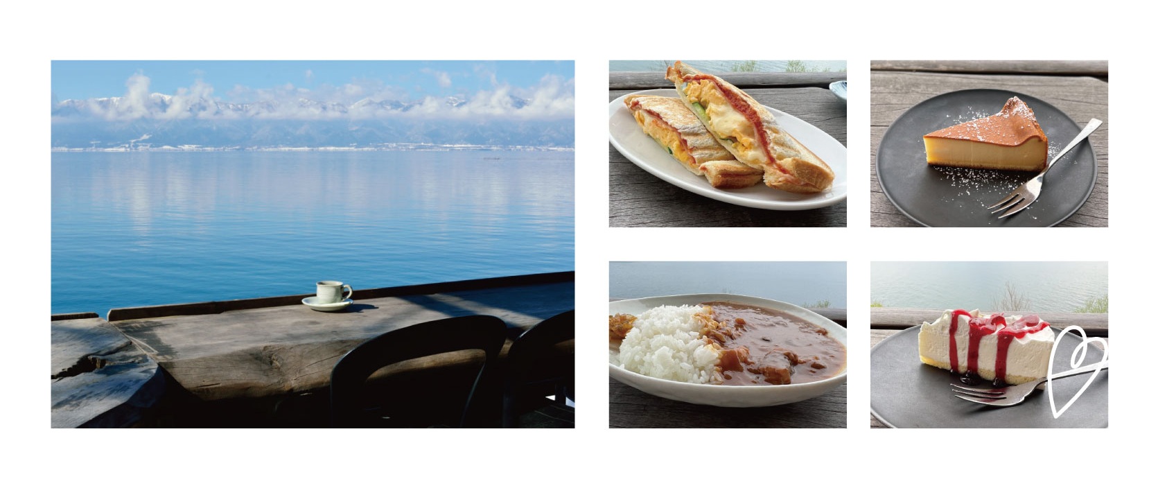 湖面に映る空の青さ、光のきらめき、そして開放感あふれるテラス席。バイクを並べて眺める時間もまた格別です。